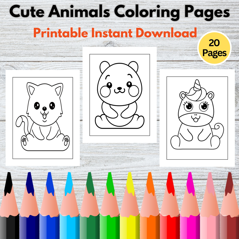 20 Adorable printables templates coloring pages sheets, wildlife and farm, forest and jungle creatures baby animals.