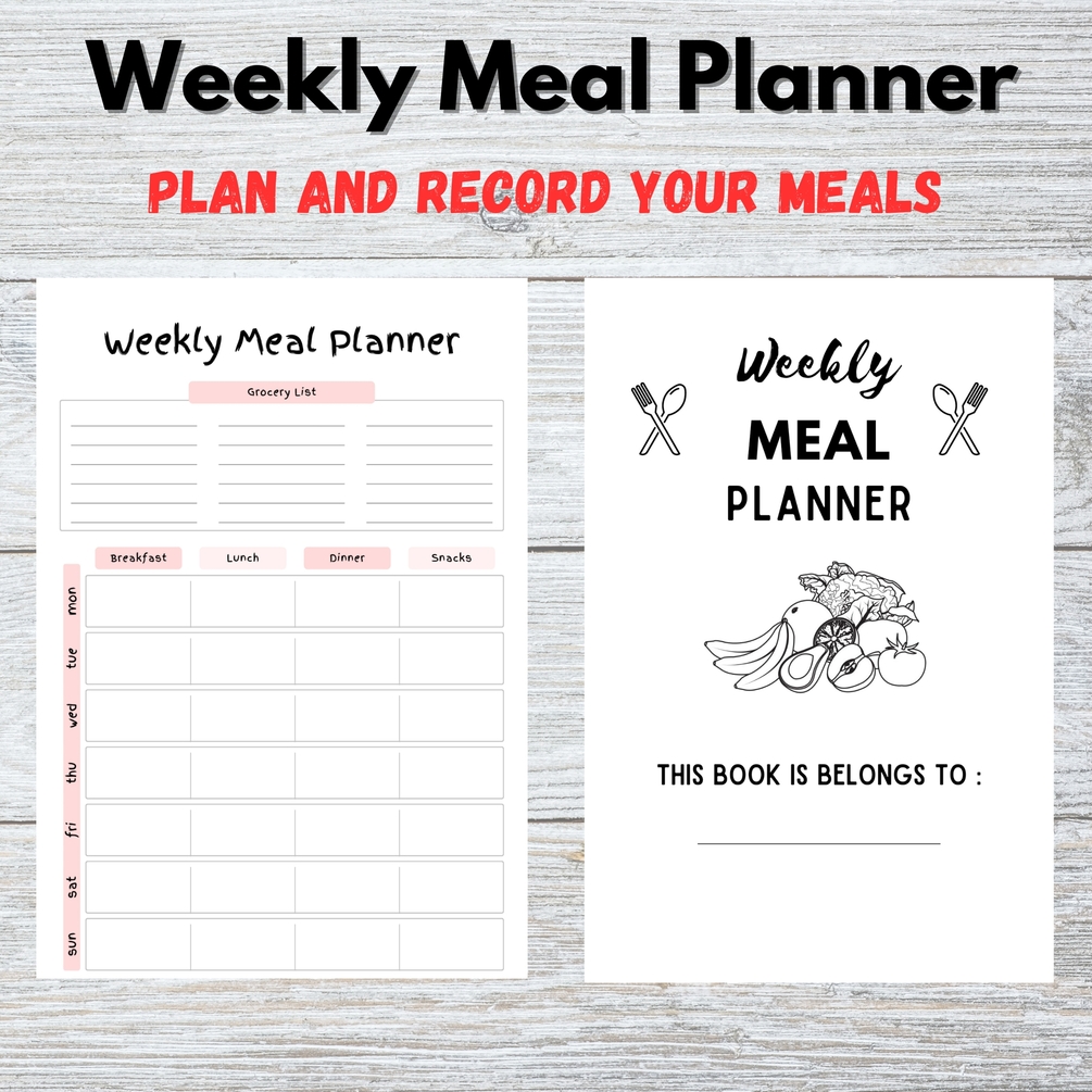 Weekly Meal Planner Track Your Meals Every Week With Grocery list, Kdp Interior Template
